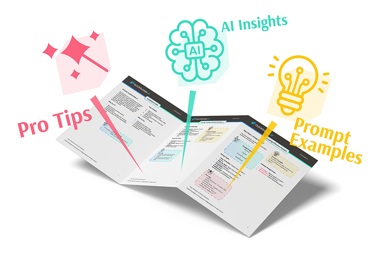 QuickGuides are profession-specific AI reference cards that simplify complex topics. Built with real-world prompts, expert tips, and use cases—each laminated guide is beautifully designed for fast learning and daily use.